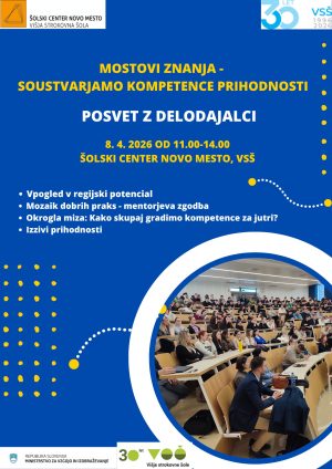 V okviru projekta Skupnosti Višjih strokovnih šol vas ŠCNM vabi na posvet z naslovom Mostovi znanja – soustvarjamo kompetence prihodnosti. Šolski center Novo mesto,