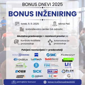 Vabimo vas na Bonus inženiring dan 2025, ki bo v torek, 11.11.2025, med 9:00 in 15:30, v Izobraževalnem centru GA Adriatic, Mirna Peč.